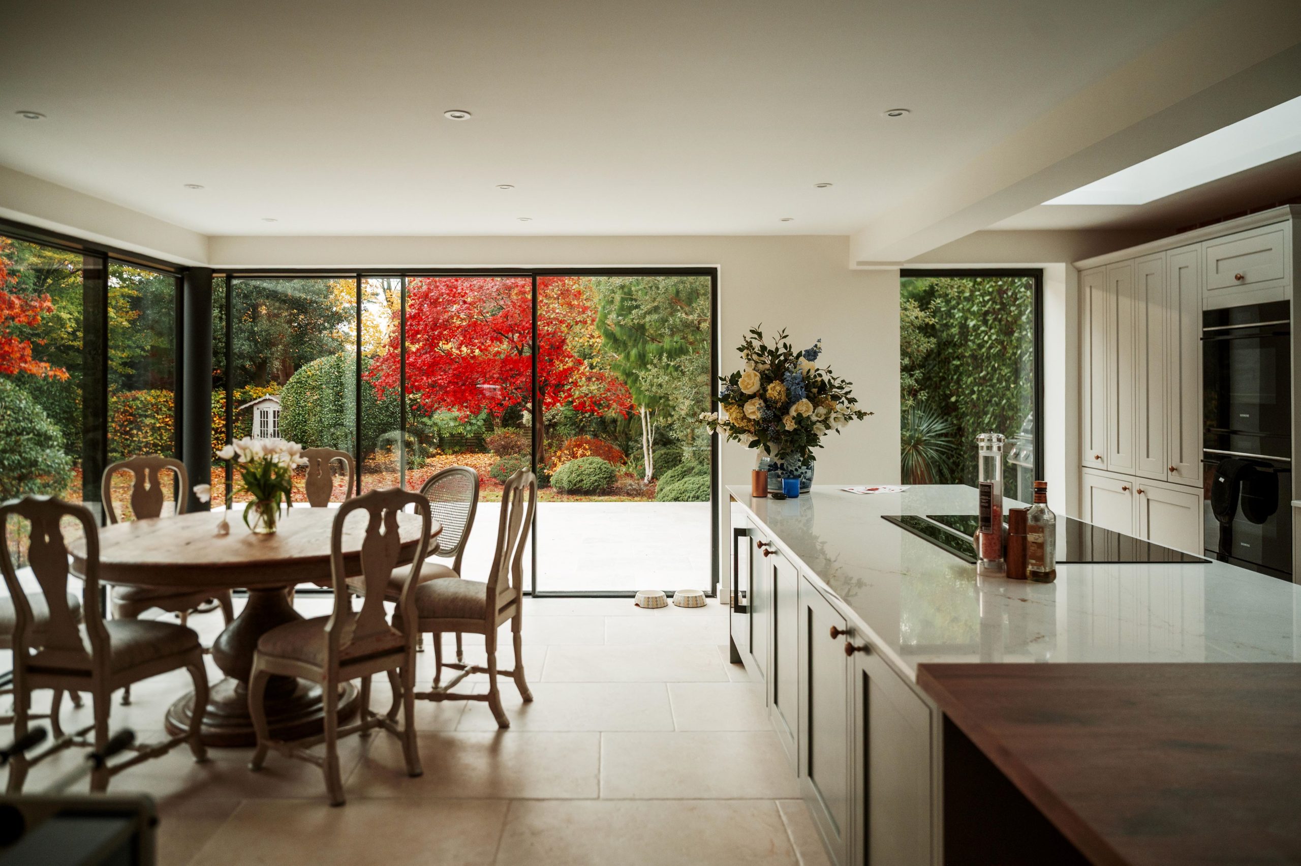 This carefully considered two storey rear extension and single storey side extension in Haslemere, Surrey transforms a well-loved family home, creating generous, light-filled spaces designed for modern family living. The design centres around a new open-plan kitchen, dining and family room, seamlessly connected to the garden and supported by a utility room and study. These flexible spaces are ideal for everyday living, entertaining and working from home, responding to the needs of a growing family seeking a home extension in Haslemere.