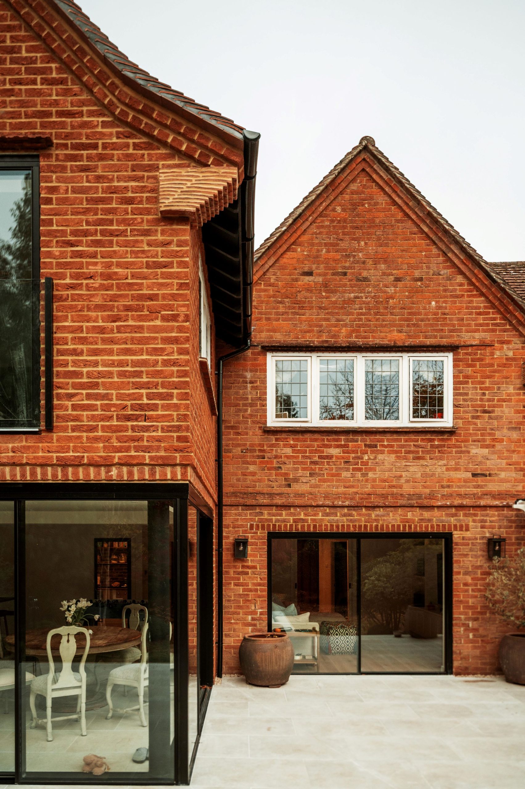 Upstairs, a new vaulted master bedroom with en-suite provides a calm and private retreat, with the vaulted ceiling enhancing light and a sense of space. Throughout the project, careful attention was paid to the brick detailing to ensure the extensions complement the original house, while large new windows and a corner window frame views of the garden. This project reflects our approach as a residential architect, delivering sensitive, well-detailed home extensions that add lasting value and support comfortable family living.